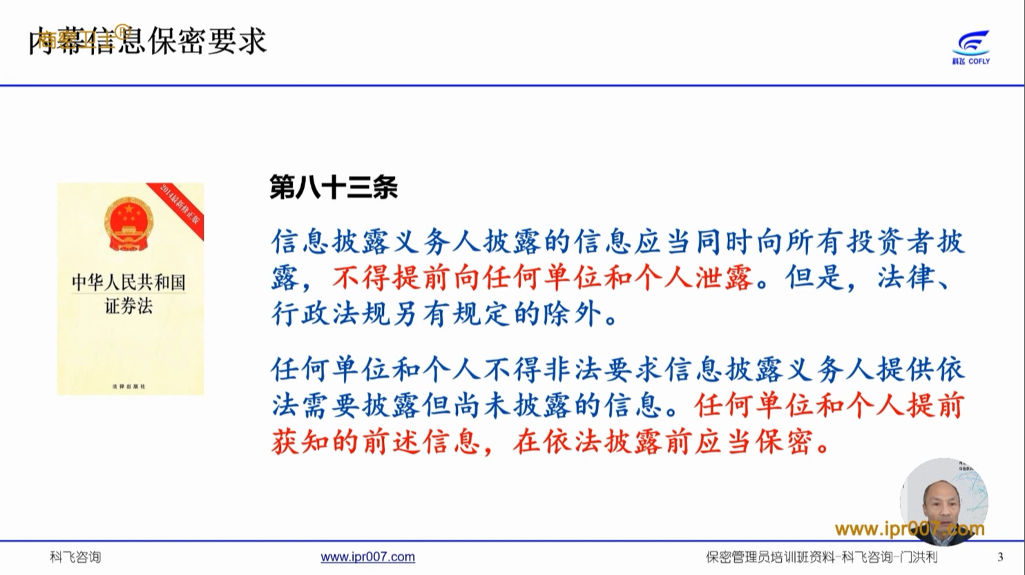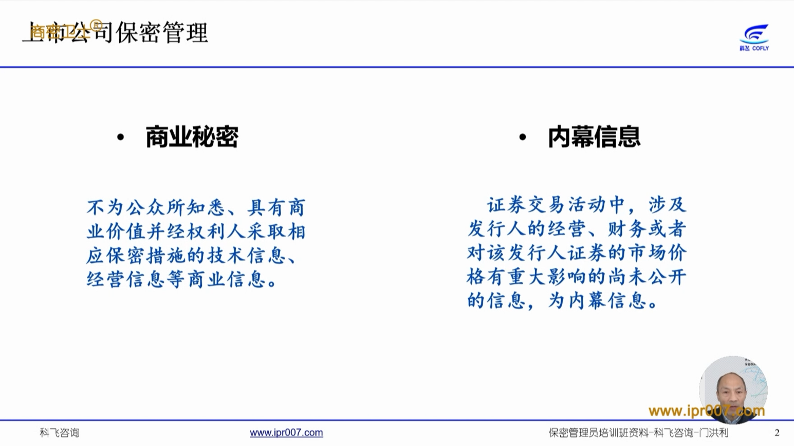 为帮助上市公司提高保密管理,维护企业核心竞争力,科飞咨询结合长期的商业秘密咨询服务经验,总结和录制了《上市公司的保密管理》课程,专门介绍上市企业保密管理的内容。