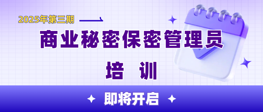 2025年第三期“商业秘密保密管理员培训”将于11月6日正式开启,学员随时可以报名参加学习。